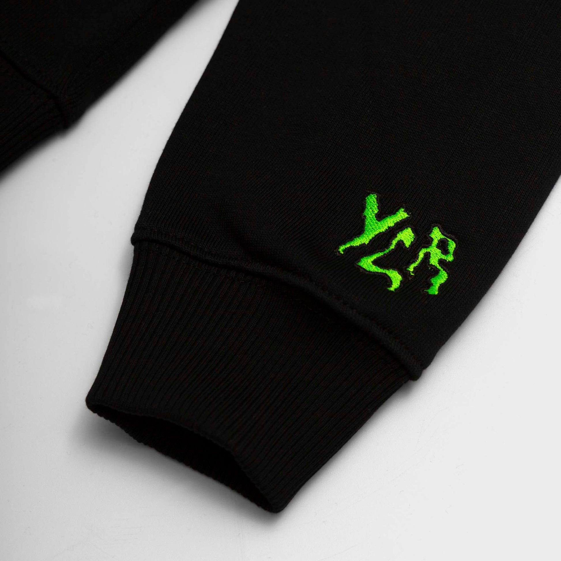 - YLR logo embroidery on wrist, Curbman embroidery on chest